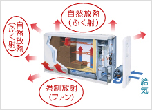 輻射式で周囲を暖めます。