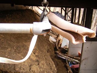 - 別荘使用中の凍結を防ぐために、給水・給湯の配管には凍結防止ヒーターを取り付け、保温材を施工しなければなりません。